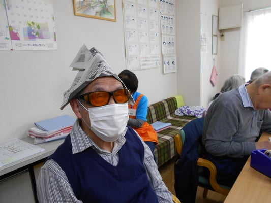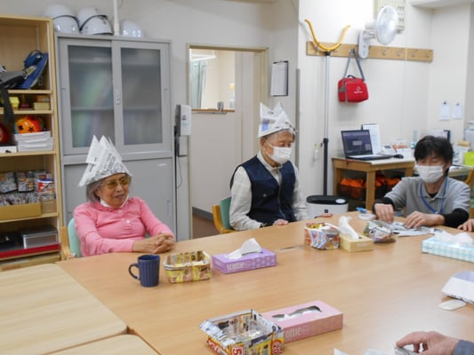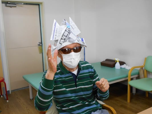 デイサービスかみふうせんでは、五月五日端午の節句にちなんで、新聞紙で「兜」と「紙鉄砲」を作る工作をしました。